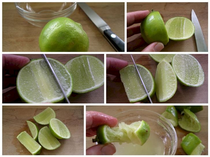 Nupjaukite viršutinę ir apatinę dalį, tada padarykite įpjovas iš kiekvienos pusės ir suskaidykite į dalis.
